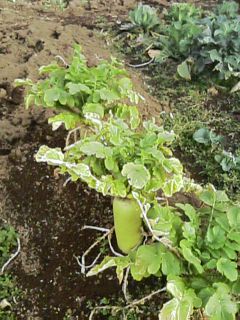 地面から覗いている大根を見ると、